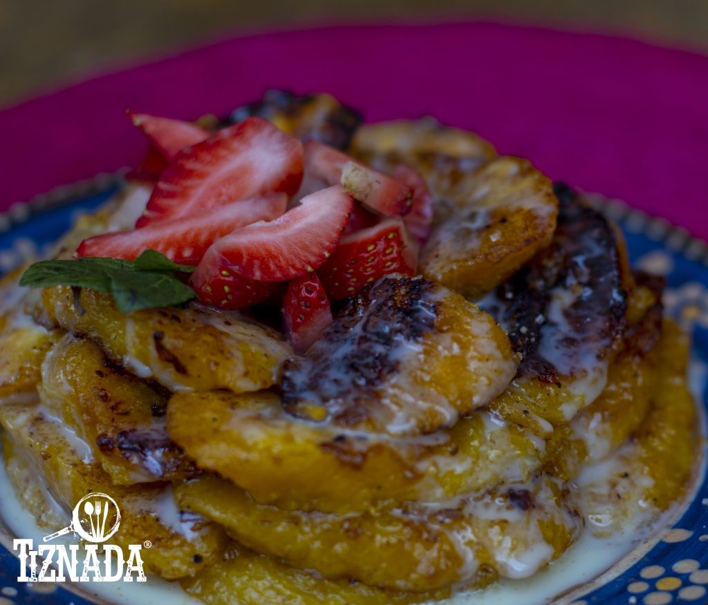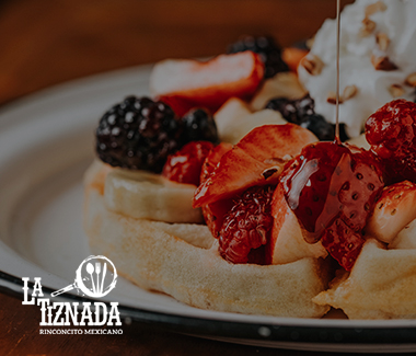 Waffles | hot cakes | molletes, plato de fruta | platanos macho con fresas