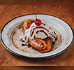 Plátano, fresa, durazno, nieve, nutella, lechera y nuéz